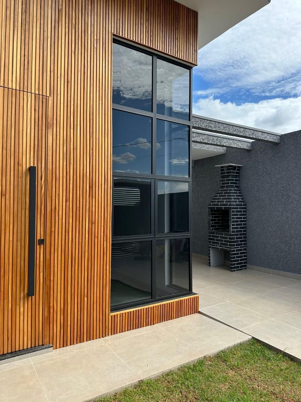✅ Fachada com Porta Ripada em Madeira